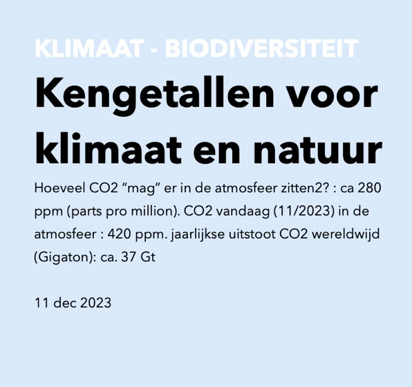 Voor de artikelen werd informatie gebruikt uit rapporten van United Nation Environment Programme (UNEP); U.N. Framework Convention on Climate Change (UNFCCC); IPCC; International Maritime Organisation; Food and Agriculture Organasition (FAO); EU Commissie; European Environment Agency; NASA; International Energy Agency; REN21; International Renewable Energy Agency (IRENA); Forest 500; FOD e.a.