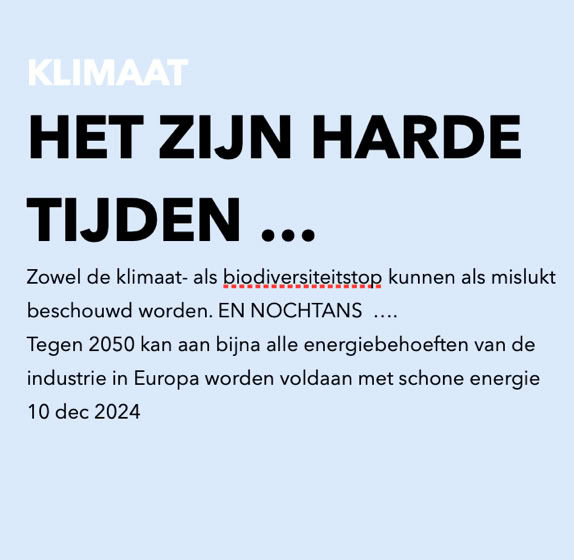 Aan de opwarming van de aarde en de catastrofale vernieling van onze natuur kan niet getwijfeld worden, de feiten staan niet langer ter discussie. De huidige probleemstelling biedt even goed enorme mogelijkheden voor de toekomst, als we er zelf voor kiezen.