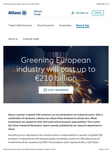 Greening European industry will cost up to €210 billion
