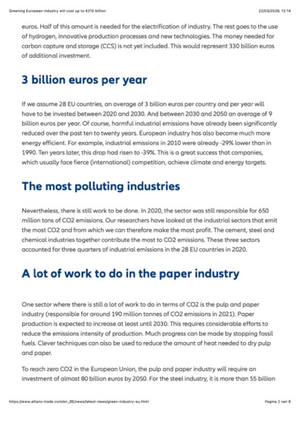 Greening European industry will cost up to €210 billion