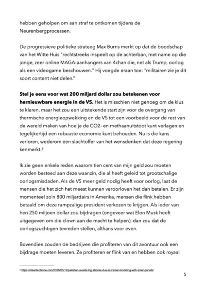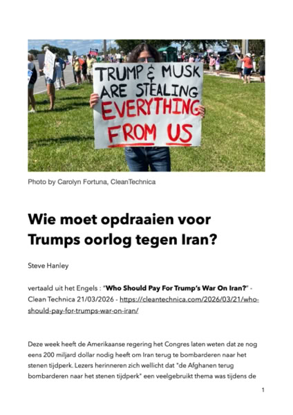 Deze week heeft de Amerikaanse regering het Congres laten weten dat ze nog eens 200 miljard dollar nodig heeft om Iran terug te bombarderen naar het stenen tijdperk.De fossiele brandstofbedrijven zullen enorm rijk worden door de verstoring van de wereldwijde olievoorziening. Stel je eens voor wat 200 miljard dollar zou betekenen voor hernieuwbare energie in de VS.
